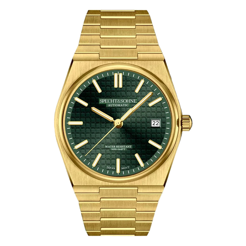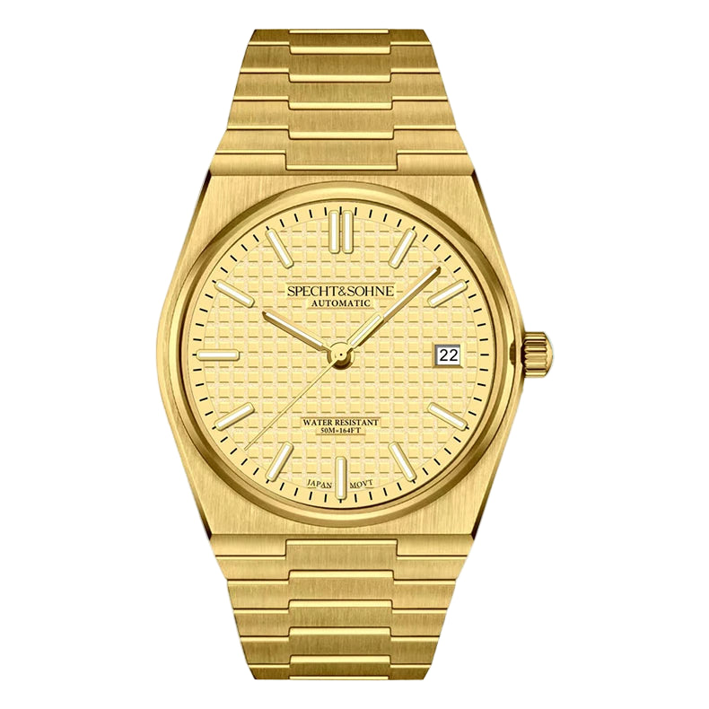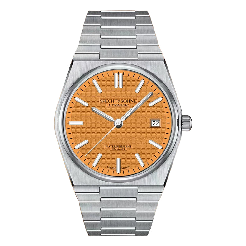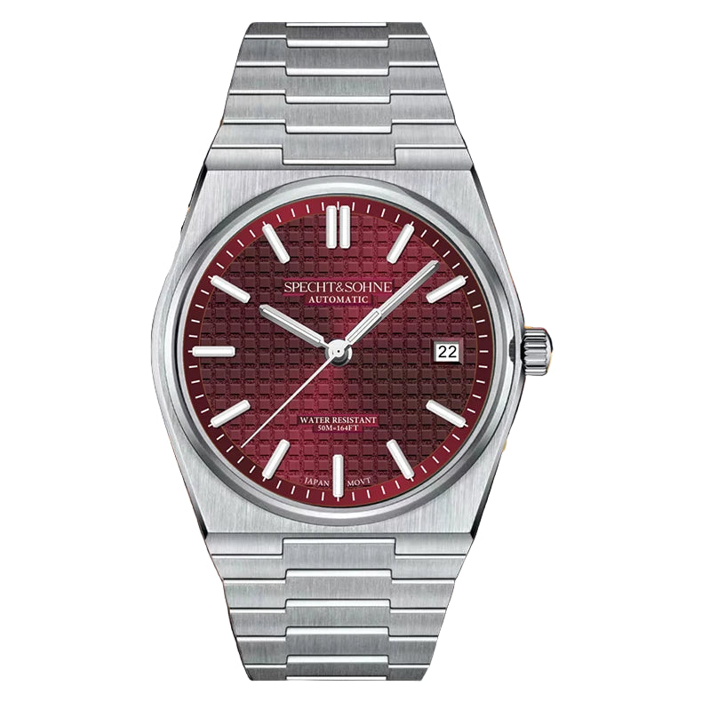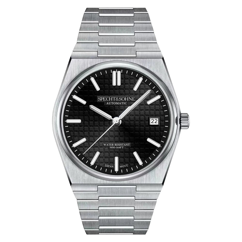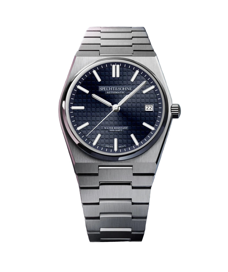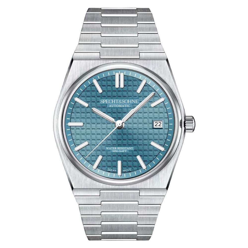 Japanese Automatic Movement • Stainless Steel • Classic 37mm Case • Sapphire Crystal • Waffle Texture Dial • Integrated Bracelet • 50M Water Resistant